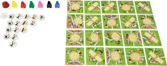 Uitbreiding op het populaire legspel Carcassonne Het circus reist rond in de omgeving van Carcassonne en overal waar het zijn tent opzet, stromen meeples toe. Je probeert je meeples in de buurt van de circustent te zetten om extra punten te verdienen, afhankelijk van een gedekt dierfiche onder de tent. Verder kun je je meeples nu ook als artiest inzetten en daar bij een speciale puntentellingen 5 punten per stuk mee verdienen. Circusdirecteuren zijn gewone meeples, maar krijgen extra punten als ze hun werk in de directe omgeving van het circus of artiesten doen. In combinatie met het basisspel is deze uitbreiding met ten hoogste 5 spelers te spelen, maar met Kathedralen & Herbergen kan er nog een speler meedoen. Wij adviseren deze uitbreiding alleen met het nieuwste basisspel van Carcassonne uit 2016 te combineren voor de beste speelervaring, maar Het Circus is ook nog te spelen met het oude basisspel en de uitbreidingen. De tegels hebben een nieuwe stijl tekeningen, maar de achterkanten zijn gelijk gebleven.