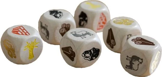 | Verpakkingsinhoud | Inhoud:, 6, grondstoffendobbelstenen, 1, blocnote, met, dubbelzijdige, speelvelden, De, spelregels |