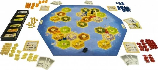 Verschillende nieuwe scenario”s voor Catan. Deze uitbreidingsset is uitsluitend te combineren met de nieuwste editie van het basisspel (de editie uit 2012 met de plastic onderdelen). De scenario”s in deze nieuwe editie verschillen van die in de oorspronkelijke versie. Met nieuwe speelstukken en artwork voor nog meer spelbeleving! De handleiding bevat een keur aan scenario”s, waarin het bouwen van scheepsroutes naar verschillende eilanden een grote rol speelt. Schepen kosten 1 hout en 1 wol per stuk, en de spelregels ervoor hebben veel weg van het bouwen van straten. In de meeste scenario”s krijgen de spelers bonuspunten voor het bouwen van nederzettingen op andere eilanden, waardoor ze erg gemotiveerd zijn om scheepsroutes te formeren. Scenario”s vari?ren van vaste speelvelden tot ontdekkingsreizen waarbij de spelers er tijdens het spel pas achter komen waar de verschillende eilanden liggen. Verder wordt de rivierbedding ge?ntroduceerd, waar goud te vinden is. Spelers met een nederzetting aan deze tegel krijgen een grondstoffenkaart naar keuze. De spelregels zijn zo goed als gelijk aan die van het basisspel met extra regels voor scheepsroutes, overwinningspuntenfiches, goudtegels en de zeerover. De Zeevaarders van Catan geeft het basisspel een compleet nieuwe dimensie en biedt oneindige variatie. Een must voor spelers die een nieuwe uitdaging op Catan zoeken! Hoe combineer ik de verschillende Catan-producten?