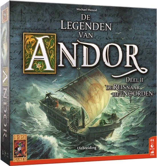 Grote uitbreiding op het Speelgoed van het Jaar 2014 Zeil met een aftands schip naar het noorden en beleef in 4 nieuwe legenden fantastische co?peratieve avonturen. De Reis naar het Noorden bevat een dubbelzijdig speelbord en veel nieuw speelmateriaal, waaronder nieuwe monsters en zelfs een nieuwe held: de zeekrijger! Je kunt De Reis naar het Noorden uitsluitend in combinatie met het basisspel te spelen. Heb je ook de uitbreiding “Nieuwe Helden”, dan kun je deze uitbreiding ook met 5 of 6 helden spelen. De Reis naar het Noorden is deel 2 van de Andor-trilogie. Ook in deze uitbreiding leer je de spelregels tijdens het spel kennen. Meer vertellen we hier niet, want dan is de verrassing er af. Beleef het zelf in “De Reis naar het Noorden”! Welk pad beloop jij door het Andor-verhaal?: