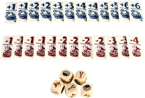 vrolijk dobbelspel, waarbij je zoveel mogelijk sushitegels moet verzamelen. Naast de sushitegels zijn er ook gratentegels, die minpunten waard zijn. Hoewel je dus liever geen gratentegels pakt, is een sushitegel alleen geldig als je hier een gratentegel aan kunt koppelen. Je moet dus wel gratentegels verzamelen.