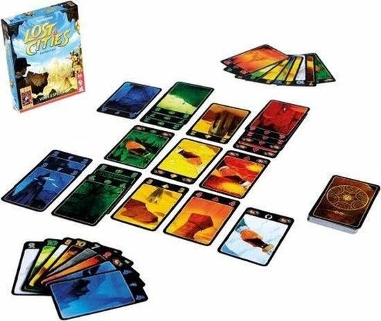 Bluf- en planningsspel voor 2 spelers. Je bouwt expedities in 5 verschillende kleuren door kaarten van laag naar hoog neer te leggen. In je beurt leg je een handkaart in een expeditie of op een aflegstapel. Je kunt kaarten die de andere speler nodig heeft vasthouden om hem dwars te zitten, maar daardoor heb je wel minder plaats voor je eigen kaarten. Met weddenschapskaarten kun je de plus- of minpunten van een expeditie verveelvoudigen! Lost Cities: Het kaartspel heeft zeer eenvoudige spelregels, maar de tactische uitdagingen en mogelijkheden zijn enorm. Door de korte speelduur kun je meerdere potjes na elkaar spelen!
