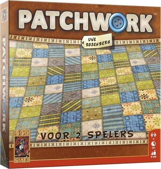 Toegankelijk, tactisch tweepersoonsspel. Probeer zoveel mogelijk lapjes op je dekentableau te leggen. Zorg niet alleen dat het lapje past, maar houd ook rekening met de tijd die het inpassen kost en de inkomsten die het in knopen genereert. Uiteindelijk krijg je namelijk zoveel punten als het aantal knopen dat je hebt minus tweemaal de onbebouwde velden op je speelbord. Bouw je als eerste een deken van 7 x 7, dan scoor je bonuspunten! In Patchwork zijn jullie niet pers? afwisselend aan de beurt. Wie in tijd achterloopt, is zolang aan de beurt tot zijn tijdsteen de ander heeft ingehaald. Dit kan leiden tot interessante dilemma”s. Omdat de lapjes altijd in een andere volgorde om het speelbord liggen, is geen spel gelijk. Door de eenvoudige spelregels in combinatie met tactische uitdaging is Patchwork leuk voor iedereen! Extra Solo variant Patchwork
