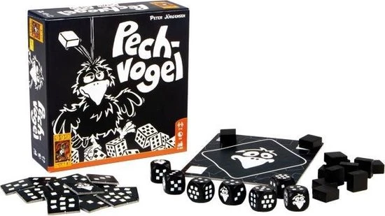 Het gemeenste dobbelspel ooit! Je probeert steeds 4 gelijke resultaten met je dobbelstenen te gooien, maar heb je in totaal 3 raven gegooid, dan is je beurt voorbij. Je krijgt dan echter wel een steen, een zogenaamde frustratie, uit de voorraad. Die kun je later gebruiken om eigen dobbelstenen opnieuw te werpen of een tegenstander te dwingen dat te doen. Lukt het je om ondanks alles 4 dezelfde resultaten te gooien, dan mag je de bijbehorende tegel met punten pakken. Ligt die toevallig bij een andere speler, dan steel je die gewoon! Pechvogel is het ideale dobbelspel voor mensen die graag anderen dwarszitten!