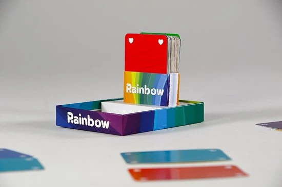 Met Rainbow moet je regenboogsetjes maken van zes verschillende kleuren. Deze maak je door kaarten met kleuren te spelen. Maar je speelt niet alleen met je eigen kaarten. Je speelt ook met de achterkant van de kaarten van de speler tegenover je! De achterkant van de kaarten van de tegenspeler mogen worden gebruikt door deze op tafel om te draaien. Je weet niet wat voor achterkanten je zelf hebt. Draai je per ongeluk een zwarte kaart of een kleurenkaart die dubbel in de rij ligt om, dan moet je direct kaarten aan je tegenspeler geven. Wie de meeste regenbogen verzamelt, wint! Dit is een bedrieglijk simpel kaartspelletje voor twee spelers, dat je wint dankzij wat geluk, een goede strategie en vooral een goed geheugen. Hoe ver durf jij te gaan met het omdraaien van kaarten?