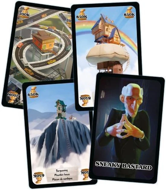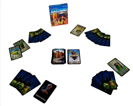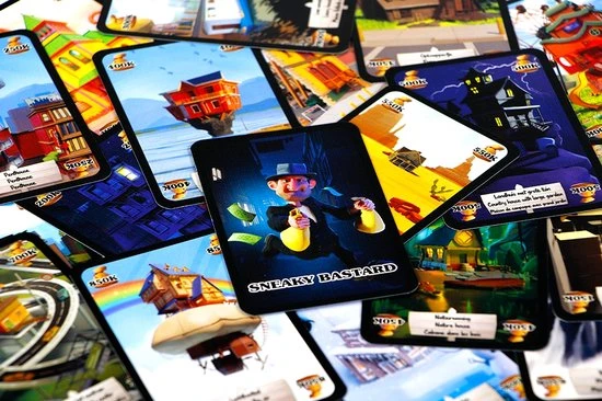 Je gaat een huis kopen! Maar de huizenmarkt is gestoord. Banken werken niet mee, adviseurs en makelaars lijken een dubbele agenda te hebben en zelfs de ergste bouwval kost een vermogen. En als jij het winnende bod plaatst, kan een sneaky bastard er met jouw geld vandoor gaan! Sneaky Bastard! is een veilingspel, waarin je gaat bieden op huizen. Om aan extra geld te komen kun je echter ook met een sneaky bastard-kaart een bod plaatsen op het geld dat door je tegenspelers tijdens de veiling wordt neergelegd. Het winnende bod geeft je het huis, maar de winnende sneaky bastard krijgt het geld. Sneaky Bastard! is een snel kaartspelletje, dat draait om strategie, interactie en tactiek. Door slim te bepalen wanneer je je sneaky bastard-kaarten inzet, kun je meer geld verkrijgen voor latere rondes. Ook moet je tactische afwegingen maken. Je hebt huizen nodig om te winnen, maar je kunt huizen ook inzetten om in volgende rondes mee te kunnen bieden.