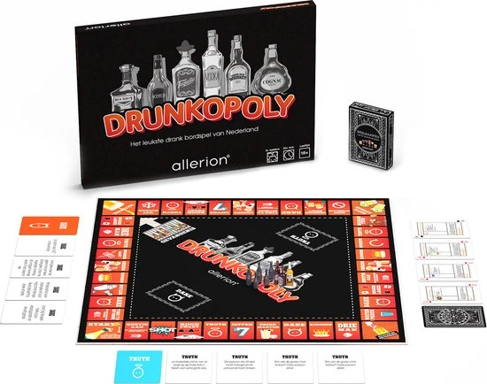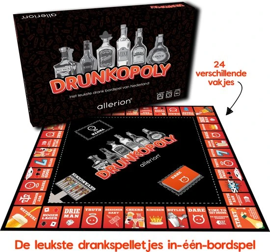 Heb jij zin gekregen in een gezellige avond? Bestel ?Drunkopoly? dan snel, nodig je vrienden uit, en leg de drank maar vast koud! Dit spel kan met zo veel spelers als je wilt gespeeld worden (als je met meer dan 8 bent, ga je gewoon in teams spelen!) en door de grote diversiteit aan opdrachten en kaartjes wordt het nooit saai. Voor vele gezellige en beschonken avonden!