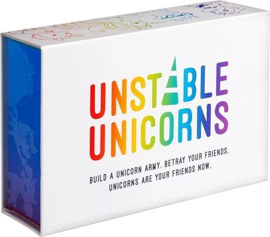 Stel je eigen eenhoornleger samen en bedrieg jouw vrienden, want de eenhoorns zijn nu je vrienden in Unstable Unicorns! In dit strategische kaartspel worden jouw twee favoriete dingen gecombineerd, namelijk de magische eenhoorn en verwoesting!