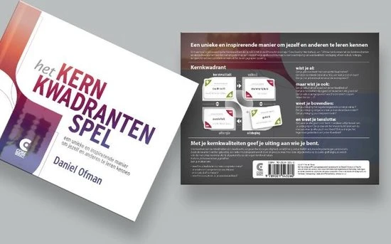 ‘Het kernkwadrantenspel’ van Daniel Ofman biedt de ultieme mogelijkheid om op toegankelijke en speelse wijze kennis te maken met het kernkwadrant?. Met de kernkwadranten kun je inzicht krijgen in je kwaliteiten en valkuilen. De 128 kaarten van ‘Het kernkwadrantenspel’ hebben elk een beschrijving van een kwaliteit/uitdaging of een valkuil/allergie, aangevuld met een synoniem en een uit het leven gegrepen typering. Zo leer je jezelf kennen en weet je waaraan je kunt werken. De vermelding van hoe je deze typering terugziet in gedrag op de achterkant van elk kaartje is nieuw.