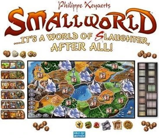 De fantasievolle wereld van Small World bordspel wordt bevolkt door maar liefst 14 verschillende rassen. Helaas blijkt de wereld, zoals de naam al doet vermoeden veel te klein voor iedereen.De spelers breiden het rijk van hun ras uit ten koste van hun zwakkere buren door middel van gevechten en het gebruik van de speciale mogelijkheden van hun ras. Hierbij is het belangrijk om goed aan te voelen op welk moment jouw ras kansloos is en je beter nieuwe volgelingen kunt zoeken om de anderen te verslaan. Small World is de fantasievolle opvolger van het klassieke bordspel Vinci, maar is veel gevarieerder, dynamischer en vooral grappiger dan zijn illustere voorganger. Aantal spelers: 2-5 spelers
