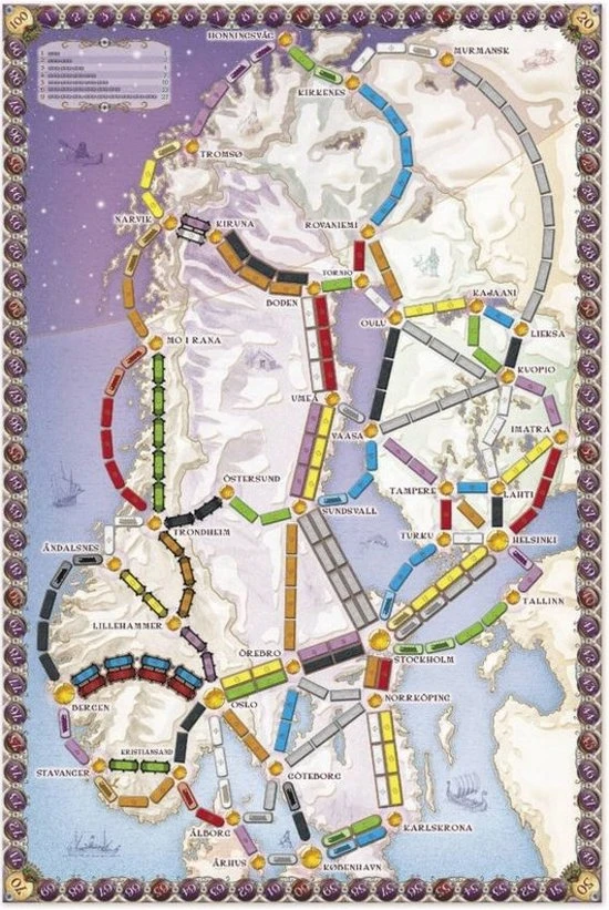 Ticket To Ride: Nordic Countries neemt je mee op een Noors avontuur door Denemarken, Finland, Noorwegen en Zweden, terwijl je reist door de grote Noorse steden, zoals Kopenhagen, Oslo, Helsinki en Stockholm.