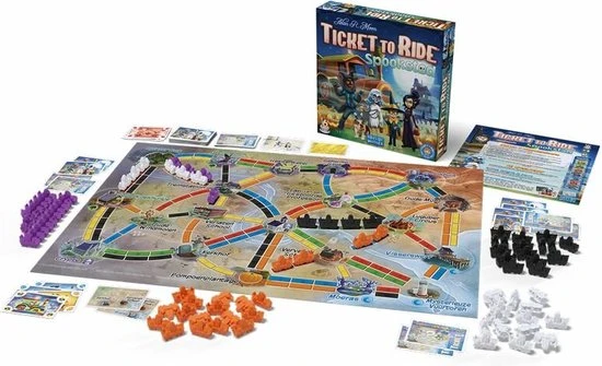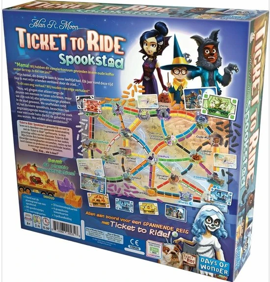 De snel en makkelijk te leren, en spelen, variant van Ticket to Ride: Spookstad. Een ideale introductie voor de jongere spelers die het Ticket to Ride spel willen spelen.