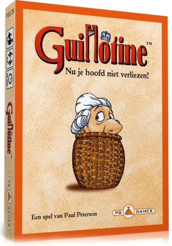 In Guillotine staan twaalf edellieden klaar voor de guillotine. In elke speelbeurt treft de valbijl de eerste in de rij. Met behulp van de actiekaarten kun je de volgorde van de rij be?nvloeden. De onthoofding van een graaf levert namelijk meer punten op dan die van een gewone burger. De speler die de meest punten verzamelt, zal de andere spelers met een ‘hoofdlengte’ voor zijn… en het spel winnen!