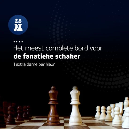 - Hoeveelheid schaakstukken: 34 (inclusief 1 dame extra per kleur)