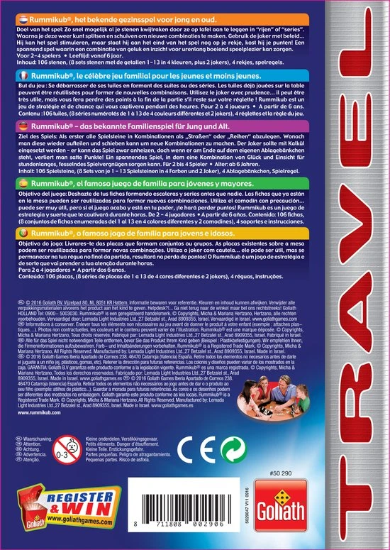 Op alle Rummikub-dozen staat “BRINGS PEOPLE TOGETHER” en dat maakt Rummikub volledig waar. Rummikub is een van de populairste spellen ter wereld en wordt op 5 continenten in meer dan 60 landen gespeeld. Want Rummikub is niet alleen een spannend spel, maar het brengt ook veel gezelligheid. Een ideaal familiespel, omdat kinderen vanaf zes jaar al mee kunnen doen en ook oma en opa zijn er dol op. Mensen die een spannend én gezellig spel zoeken, kiezen voor Rummikub. Er gingen je al meer dan 60 miljoen mensen voor.