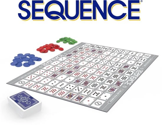 Sequence is een leuk kaartspel voor 2 tot 12 spelers waarin je je tegenstanders te slim af moet zijn en als eerste twee rijen van vijf fiches van dezelfde kleur op het speelbord te krijgen! Veel spelers gingen je voor, het spel is een hit in de VS en Europa en er zijn al meer dan 10 miljoen spellen verkocht. Een must-have voor de spelletjeskast volgens fanatieke spelers! Pas op! Zodra je begint met spelen wil je niet meer ophouden met dit bordspel.
