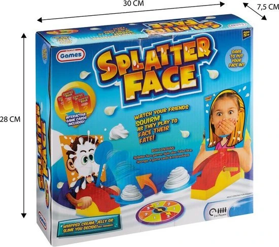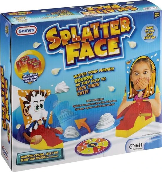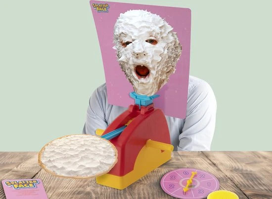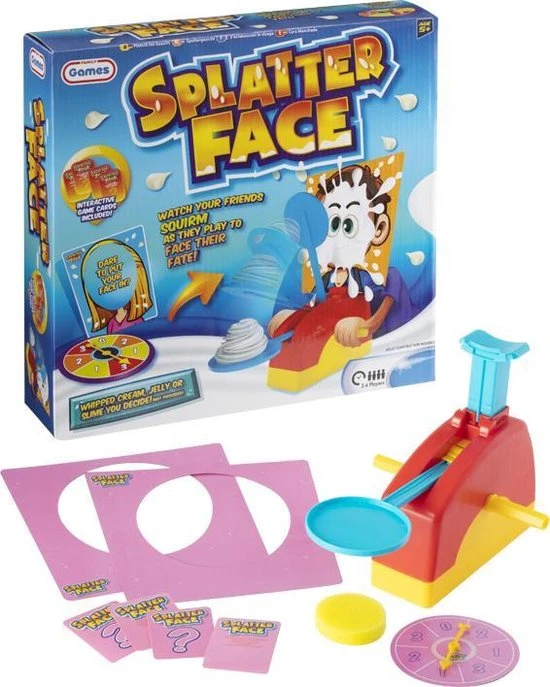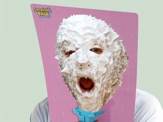 Op de splatter face kun je verschillende ingredienten plaatsen, zoals: slagroom, slijm of gelei.