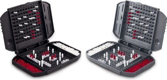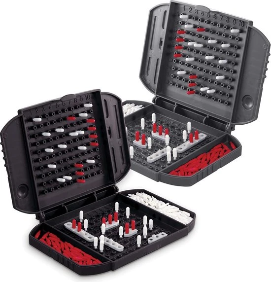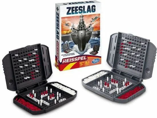 Het Zeeslag reisspel is een compacte versie van het bekende spel. De geopende spelcassette zorgt dat je tegenstander niets kan zien. Markeer je schoten met de rode en witte pinnetjes.