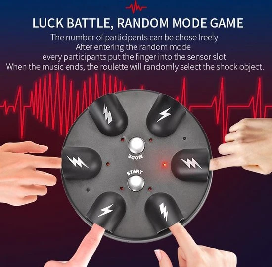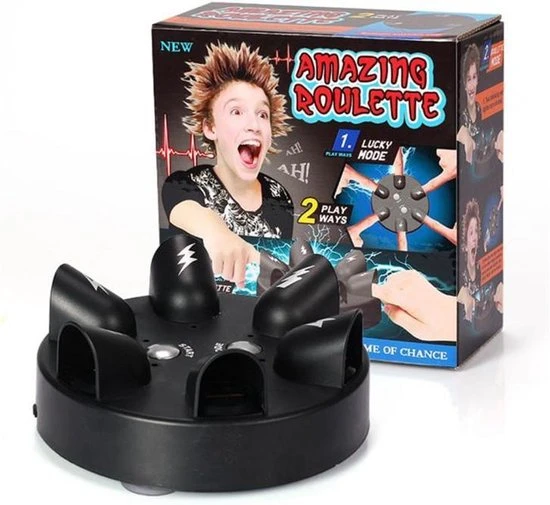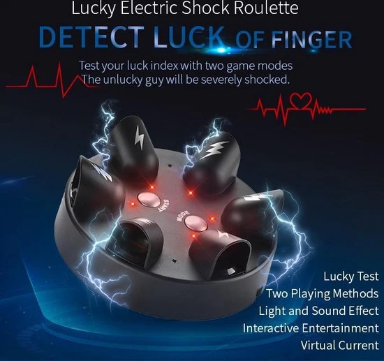 Met deze Shocking Roulette Shot Game heb je een drinkspelletje dat compleet willekeurig zijn slachtoffers aanwijst. Vul het borrelglas met een drank naar keuze en laat iedere medespeler een vinger in de Shocking Roulette Game steken. Het willekeurige ‘slachtoffer’ krijgt een elektrische schok via zijn vinger en moet het glas leegdrinken! De selectie is volledige willekeurig en je kunt instellen hoeveel spelers er zijn. Het drankspel / bierspel kan beginnen.