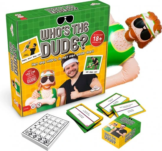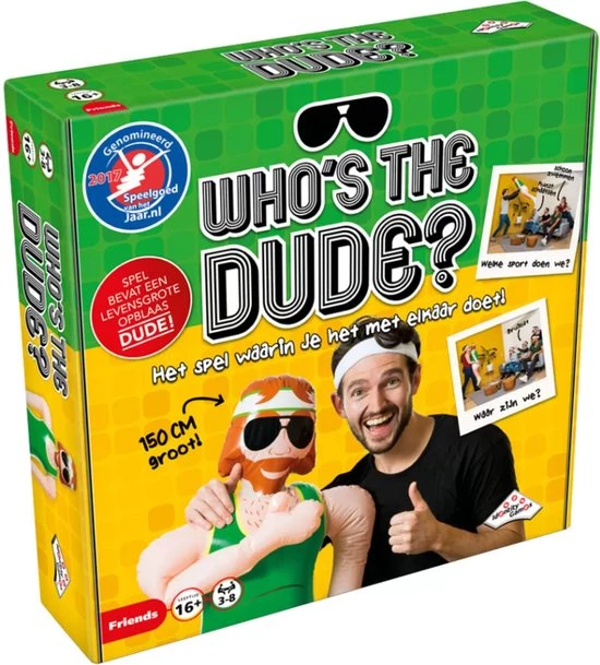 Hij is relaxed, onhandig en maakt de bizarste dingen mee. Het is de Dude! In dit hilarische spel is de levensgrote Dude je beste vriend. Beeld samen met hem zo veel mogelijk situaties uit. Speel bijvoorbeeld een sc?ne uit een film na of beeld een sport of beroep uit. De andere spelers proberen binnen de tijd te raden wat jij allemaal met de Dude uitbeeldt. Dan is de volgende speler aan de beurt. De speler die na 4 rondes de meeste punten heeft, wint het spel!