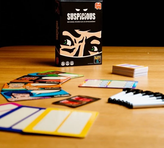 Suspicious is een spannend partyspel waarbij je moet opletten op elk woord dat je zegt!