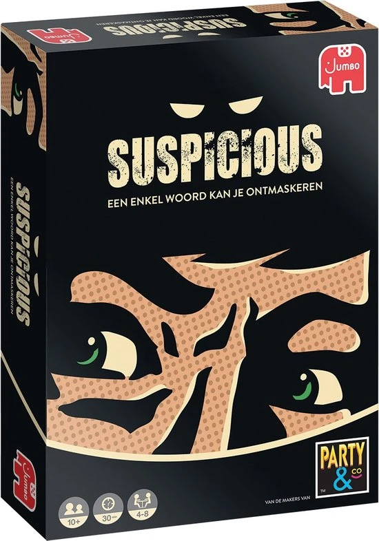 Er is een spion in de kamer, maar wie is het? Suspicious is een snel en opwindend partyspel waarbij de Spion niet weet dat hij of zij een Spion is, en de anderen niet weten dat ze Agenten zijn … Let op je woorden bij dit spannende partyspel, want een enkel woord kan jou ontmaskeren! Van de makers van Party & co.