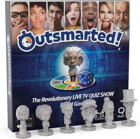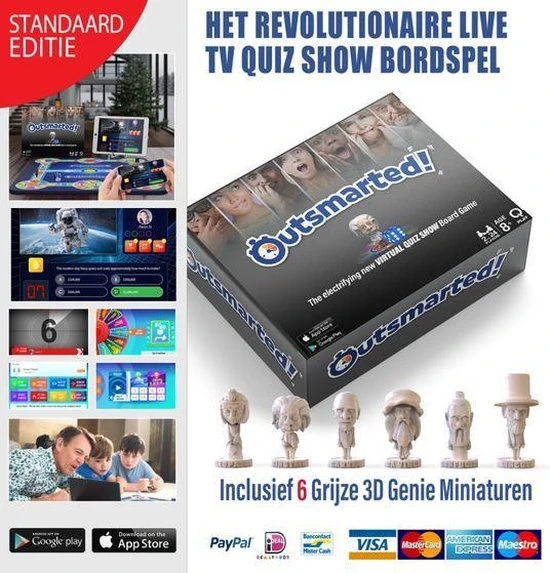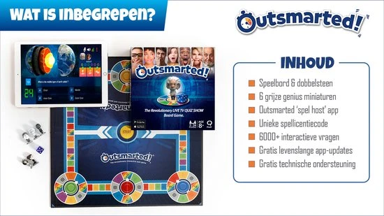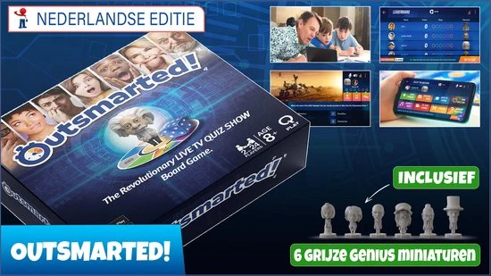 Bordspel kopen? Outsmarted (Standaard) oftewel ‘te slim af’ is het revolutionaire & interactieve Trivia / Triviant / Trivial Pursuit bordspel + app met 6000+ innovatieve & educatieve vragen dat tevens een live familie quiz show is…