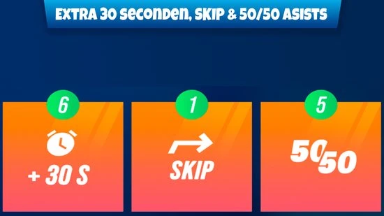 Haal het meeste uit verrassingsbonussen en pas op voor de turbomodus! Verdien ‘Assists’ en krijg 30 seconden extra om na te denken I Vergroot jouw kansen en ga voor 50/50 I SKIP naar de volgende vraag.