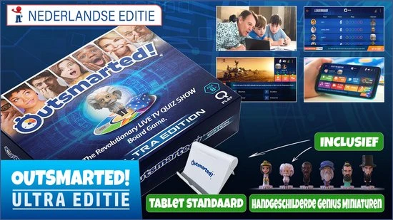 Outsmarted (Ultra) oftewel ‘te slim af’ is het revolutionaire & interactieve Trivia bordspel + app met 6000+ innovatieve vragen dat tevens een live familie quiz show is…