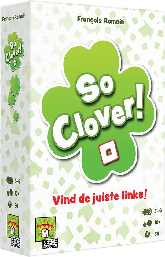 Bij het co?peratieve bordspel So Clover moeten jij en je medespelers zo veel mogelijk trefwoorden raden. Trek kaarten en noteer op jouw eigen klavervormige spelbord de gemeenschappelijke kenmerken tussen de trefwoorden op jouw kaarten – dit zijn je aanwijzingen. Vervolgens moeten jij en je medespelers samenwerken om via een aanwijzingenfase en een besluitface de trefwoorden van elke speler te achterhalen. Aan het einde van het spel scoor je punten voor het aantal trefwoorden dat jullie samen gevonden hebben en noteren jullie je score op de scorelijst.