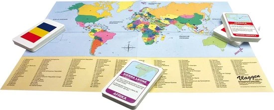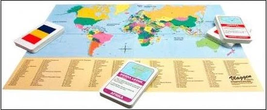 Vlaggen hebben hun eigen kenmerkende code. Op de Olympische Spelen, bij de wereldkampioenschappen, in TV programma’s, op reis en tijdens internationale evenementen herken je de landen aan hun vlaggen. Elke kaart bavat informatie over de geografische ligging, de oppervlakte, de hoofdstad en het aantal inwoners, van een land, evenals informatie over bergen, rivieren en de grenzen.