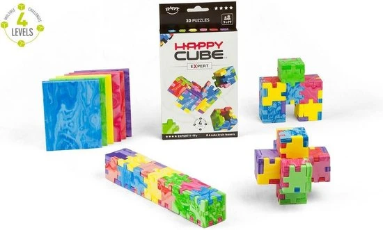Happy Cube Expert (Marble Cube) heeft zijn naam te danken aan zijn prachtig gemarmerd schuim en is de moeilijkste versie van de familie. Elke kubus heeft een verschillende vorm, kleur en oplossing. Je bent gaandeweg een uitblinker geworden in het puzzelen? Bij Happy Cube Expert duiken we in de wereld van befaamde genies. Ga tot het uiterste en ervaar Albert Einstein met de paarse puzzel. Een educatief toys for hands product!