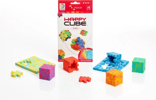 Happy Cube Pro (Profi Cube) herken je zo aan zijn felle kleuren en is zeker niet voor beginners! Deze puzzels zijn voor echte puzzelprofs. De uitdaging is groot want elke puzzel heeft maar ??n oplossing. Elk model heeft zijn eigen vorm, kleur en naam, die verwijst naar een bekende wereldburger. De oranje puzzel, alias Rubens, verwijst bijvoorbeeld naar de beroemde schilder.