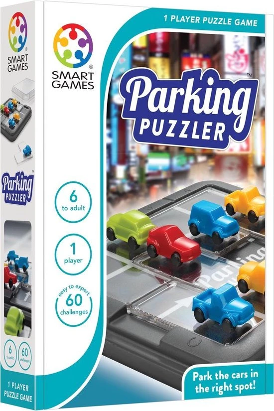 Parkeer de auto’s in de juiste plaats! Kan jij goed parkeren? Test het in 60 opdrachten in Parking Puzzler! Een uniek spel waarin je op basis van deductie de juiste plek voor iedere auto moet zoeken. Gebruik hiervoor de tips in de opdracht. Maar let op: fout parkeren is verboden! Zet je auto niet midden op de rijweg of op 2 plaatsen tegelijk. Leeftijd 7+