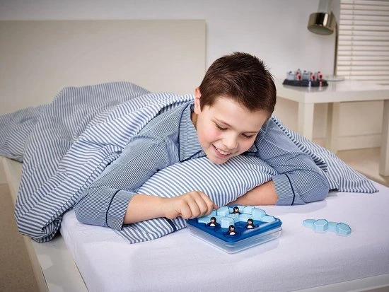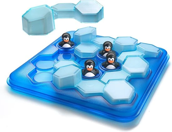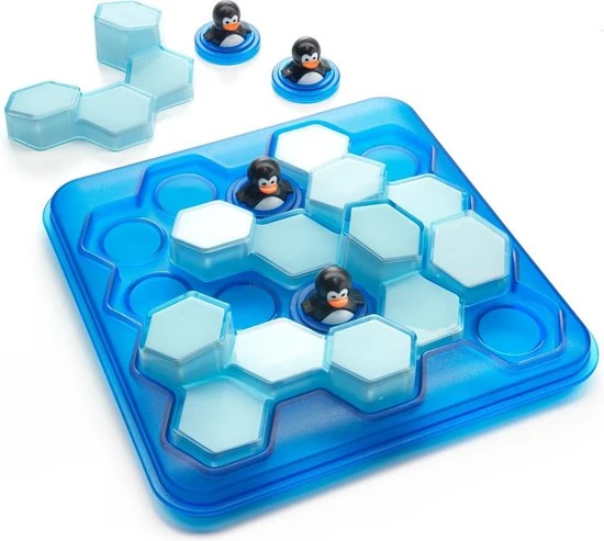 Het spelbord kan je tevens gebruiken als opbergvak voor de puzzelstukken. Handig voor op reis, met een stevig, transparant deksel. Met de zeshoekige puzzelstukken is dit weer een heel ander spel dan Penguins on Ice.