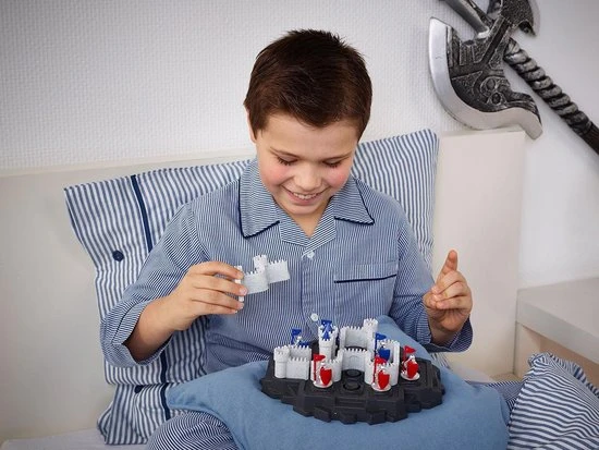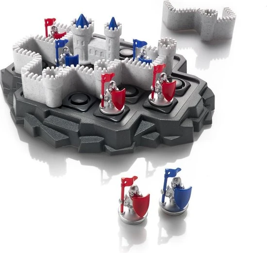 | Verpakkingsinhoud | 1, spelbord, 1, hoge, toren, 4, puzzelstukken, met, muren, rode, en, blauwe, ridders, boekje, met, 80, opdrachten, van, makkelijk, tot, razend, moeilijk, foldertje, met, spelregels, in, verschillende, talen |