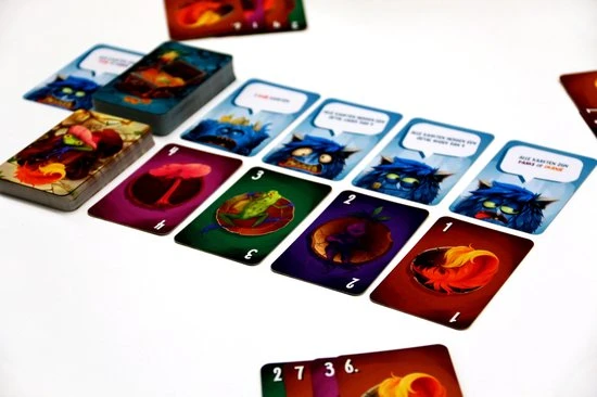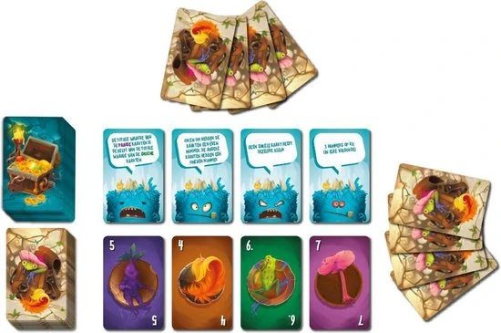 In Cahoots staat samenspelen centraal! Voldoe aan alle opdrachtkaarten. De kaarten liggen met vier kaarten in vier stapels naast elkaar. Je mag alleen spelen met de kaarten die matchen met de kleur of het nummer van de voorafgaande kaart op de stapel. Werk samen en voltooi all opdrachten zonder te bespreken wat elke speler op hand heeft. De kaart die je neerlegt moet altijd dezelfde kleur of hetzelfde nummer hebben als de kaart waar je hem bovenop legt. Het doel is om alle stapels ??n kleur te maken of de waarde van alle kaarten precies tien te maken. De uitdaging is dat je niet met elkaar mag overleggen. In de spelregels worden naast het basisspel nog een drietal andere varianten besproken. Je kunt naast de basis versie ook nog Snelle Cahoots en Stille Cahoots spelen of Mini Cahoots wanneer je met kleine kinderen speelt.
