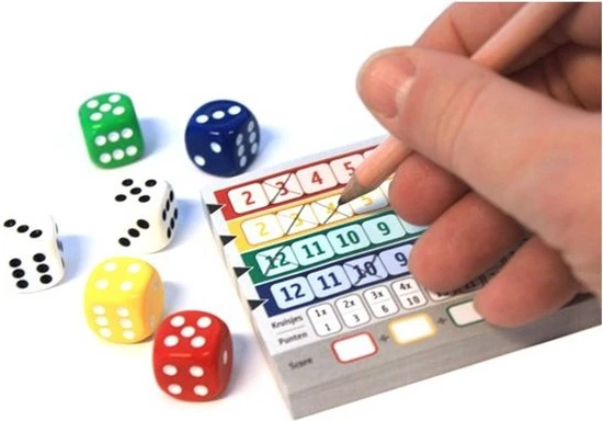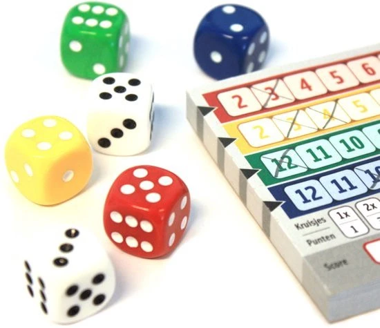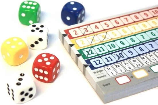 - Inhoud: – 6 dobbelstenen – 1 scoreblok – spelregels