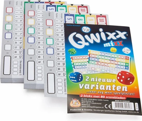 In deze verpakking van Qwixx Mixx bevinden zich 2 nieuwe varianten scoreblocks voor nog meer spelplezier. De scorebloks zijn te gebruiken voor het Qwixx dobbelspel ?n het Qwixx kaartspel! De regels veranderen niet, maar de spelbeleving wel.