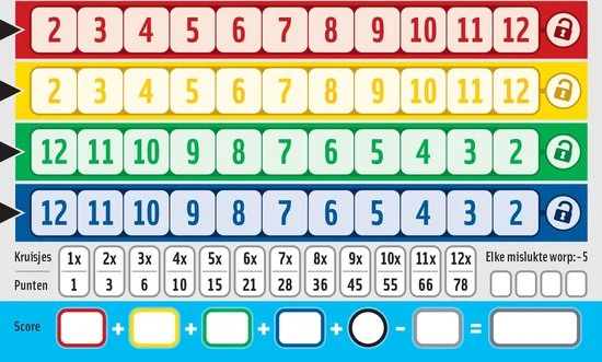 Het Qwixx On Board dobbelspel bestaat uit twee extra scoreblokken met 80 blaadjes per stuk (160 in totaal) voor het populaire dobbelspel Qwixx On Board.