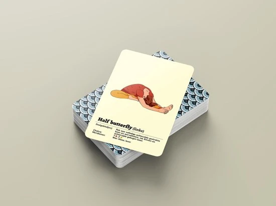 Voer de houdingen uit in jouw tempo en tijd. Neem rust na elke houding. Omdat sommige houdingen zowel links als rechts als aparte kaart in de set zitten kan het zijn dat je een houding aan 1 kant wel doet en aan de andere kant niet. Met het blind trekken van de kaarten stem je af op je onderbewustzijn en kun je voor mooie verrassingen komen te staan! Uiteraard kun je altijd de andere kant ook nog doen als je voelt dat dit goed is voor je!